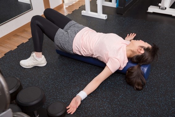 ポールの上に乗ると、背中に適度な刺激が与えられ心地よさを感じます。